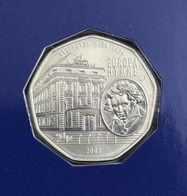 Prodajem srebrnu prigodnu kovanicu Republike Austrije izdanu 2005. godine, posvećenu Europskoj himni – „Odi radosti” Ludwiga van Beethovena.