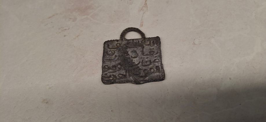 Mislim da je u pitanju stari Islamski novac. S obzirom da je od olova predpostavljam da je replika u pitanju ili suvenir.