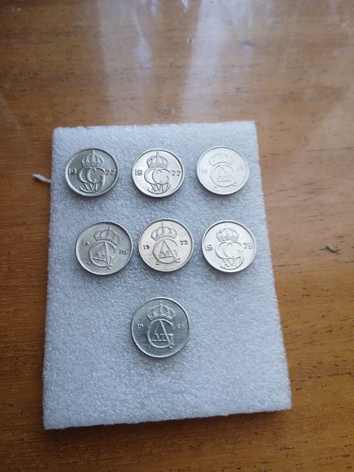 Kompletic švedski 10 era stanje od UNC do C vidljivo na slikama debljina 1 mm rub gladan težina 1,35 g bakar/nikl godišta 1977 (2x),1968,1959,1973,1970.krause No.835.Prodajem komplet ne pojedinačno,dostavljam HP pouzećem, ne mijenjam se.