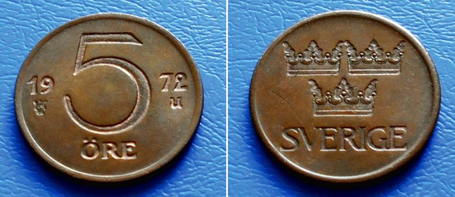 ŠVEDSKA SWEDEN 5 ORE 1972 U KM:845 - GUSTAF VI