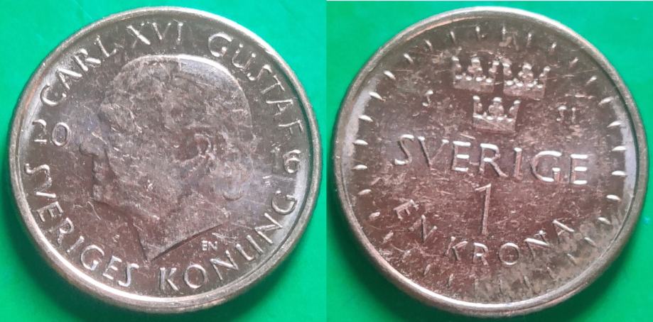 Sweden 1 krona, 2016 King Carl XVI Gustaf ***/
