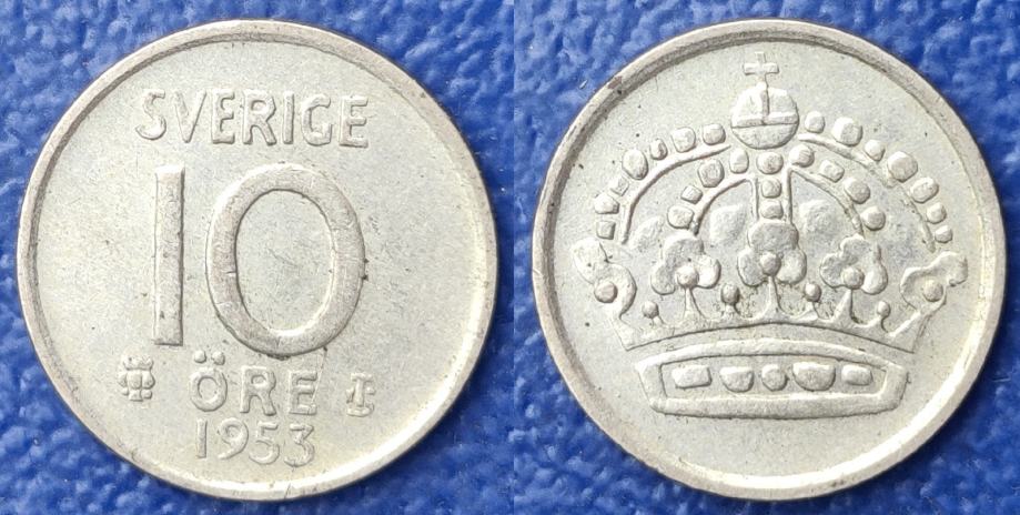Sweden 10 öre, 1953 SREBRNJAK ***/ 3,00 EURO !!!