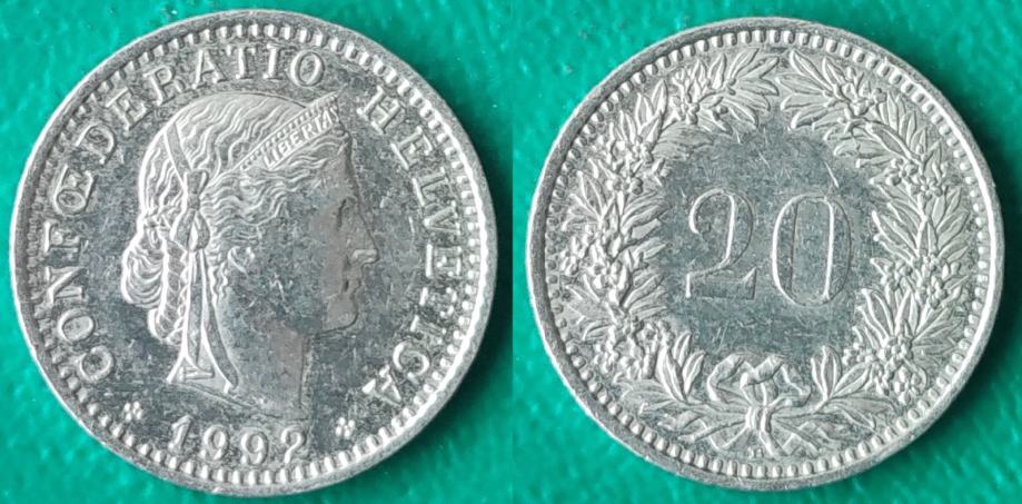 Switzerland 20 rappen, 1992 ***/# 1,00 EURO !!!