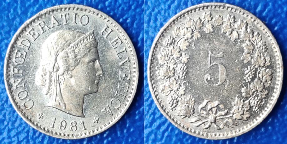 Switzerland 5 rappen, 1981 / 1,00 EURO !!!