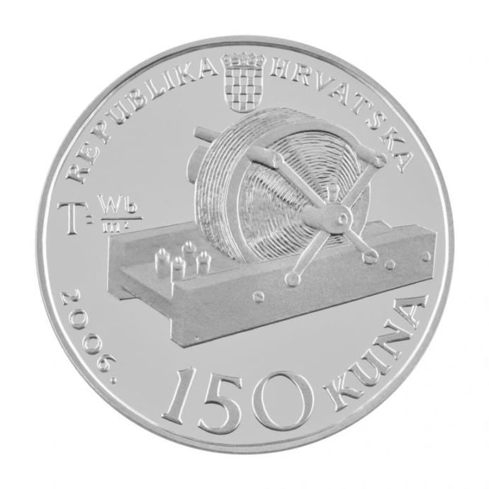 Naličje: Teslin indukcijski motor sa grbom RH u obodnom natpisu Republika Hrvatska, godinom izdavanja, nominalnom vrijednosti i formulom za jednicu mjere Tesla
