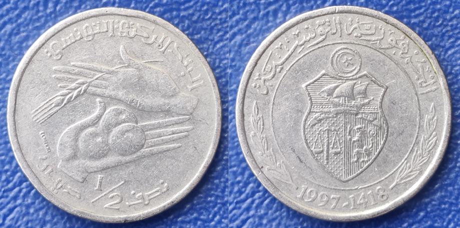 Tunisia ½ dinar, 1418 (1997) / 1,60 EURO !!!