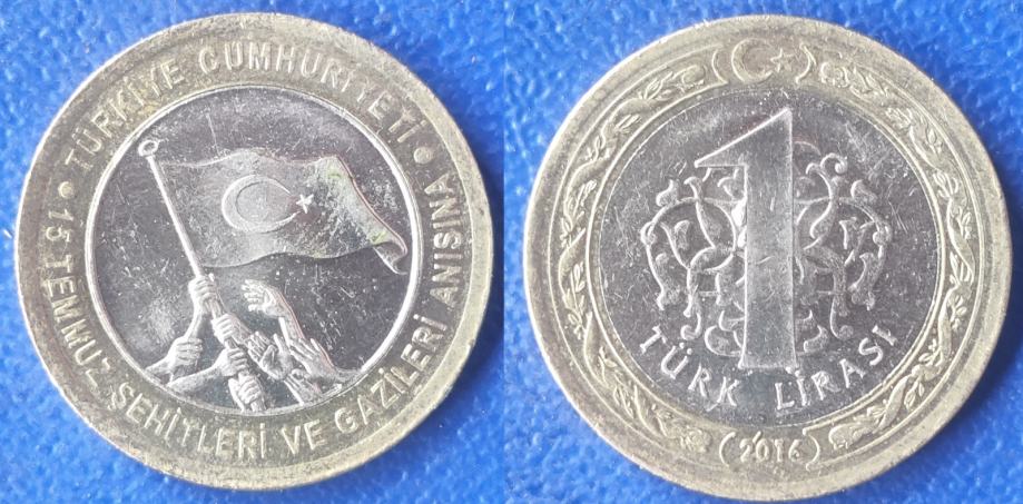 Turkey 1 lira, 2016 In memory of the martyrs of July 15 ***/