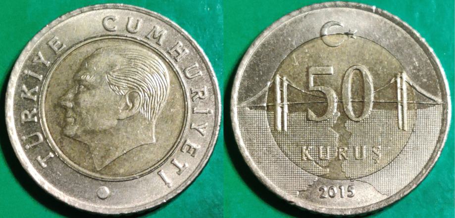 Turkey 50 kurus, 2015 Istanbul suspension bridge ***/ 0,80 EURO !!!