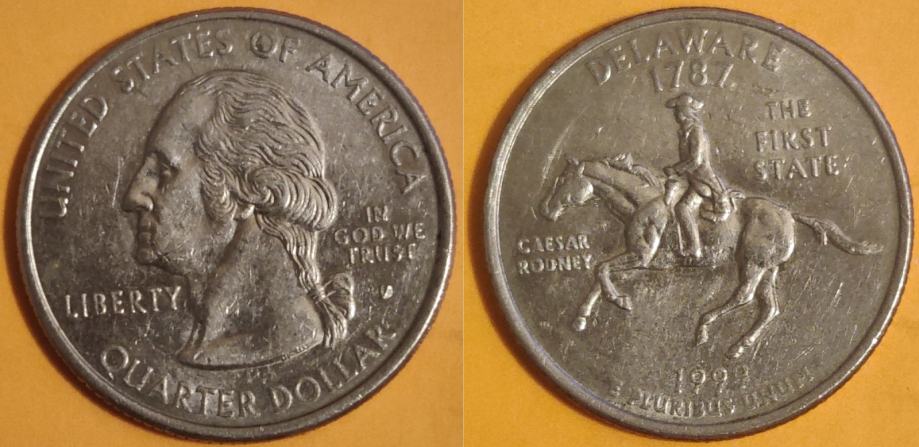 USA ¼ dollar, 1999 Delaware State Quarter "D" ***/