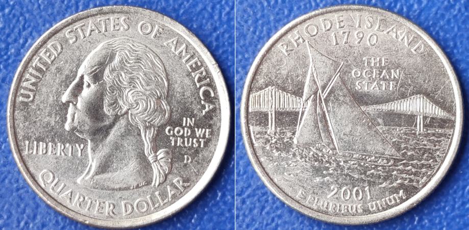 USA ¼ dollar, 2001 Rhode Island State Quarter "D" - Denver ***/ 1,30