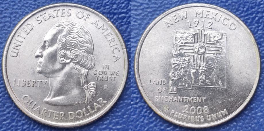 USA ¼ dollar, 2008 New Mexico State Quarter "P" - Philadelphia ***/