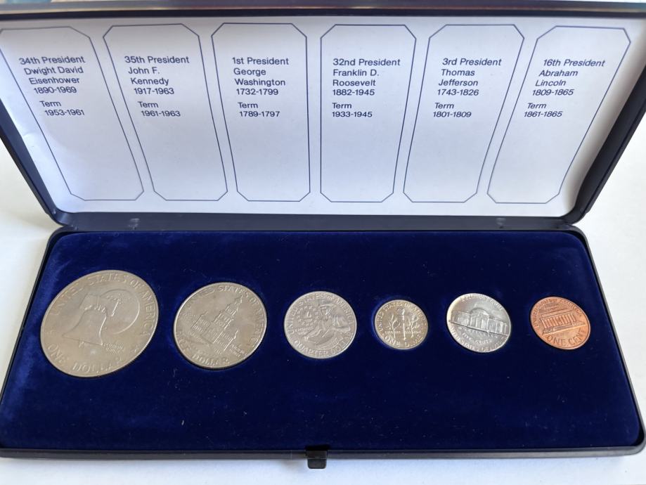 Set je originalan i kompletan, idealan za kolekcionare američke numizmatike ili kao tematski povijesni set.