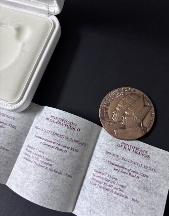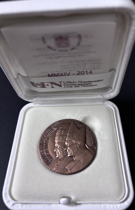 Prodaje se službena brončana medalja Vatikana iz 2014. godine, izdana povodom kanonizacije pape Ivana XXIII i pape Ivana Pavla II.