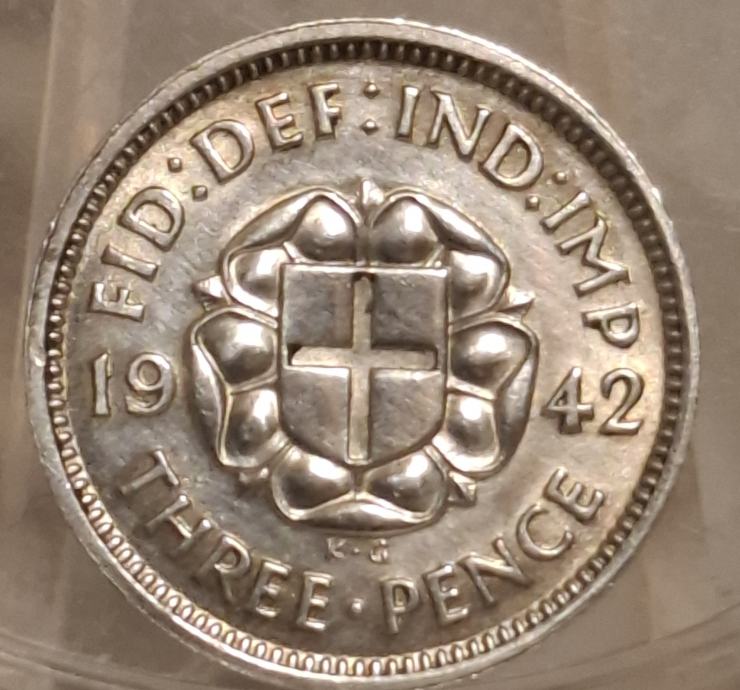 VELIKA BRITANIJA 1942 - 3 PENIJA - SREBRO