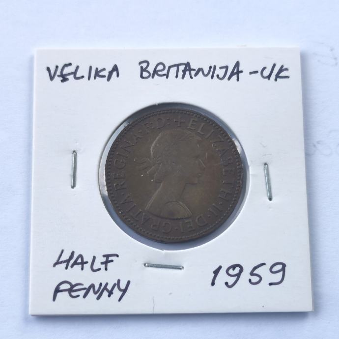 Velika Britanija half penny 1959 - UK kovanica - Elizabeth II