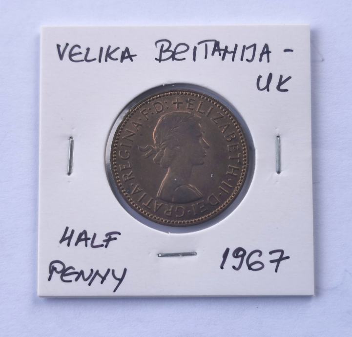 Velika Britanija half penny 1967 - UK kovanica - Elizabeth II