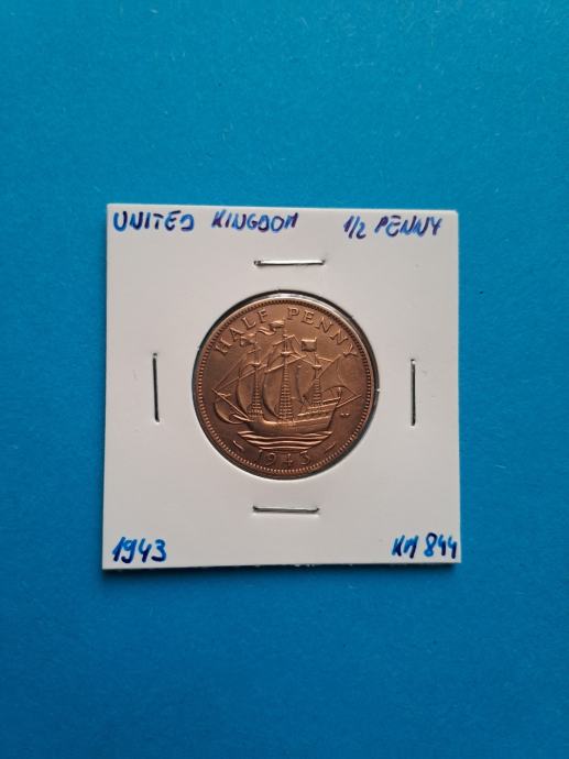 Velika Britanija (United Kingdom) 1/2 Penny 1943