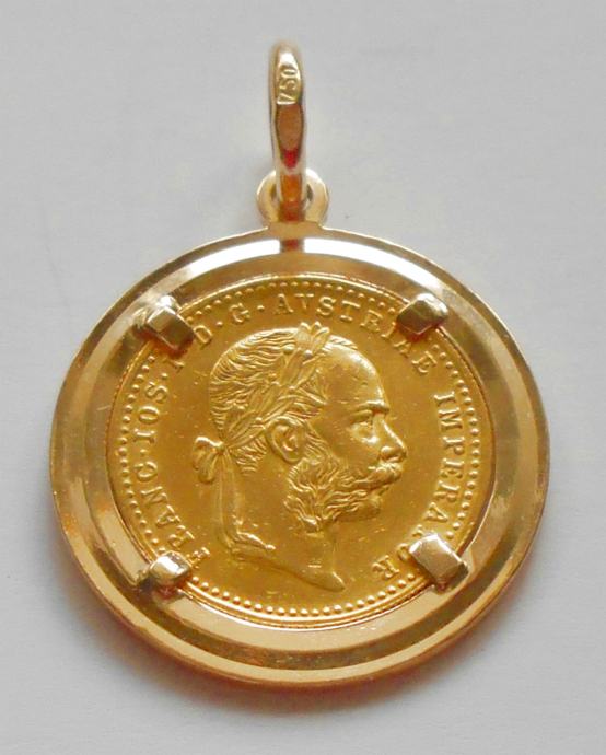 VINTAGE AUSTRIJA 1 DUKAT 1915 ZLATNIK *986, 23 k (U OKVIRU *750, 18 k)