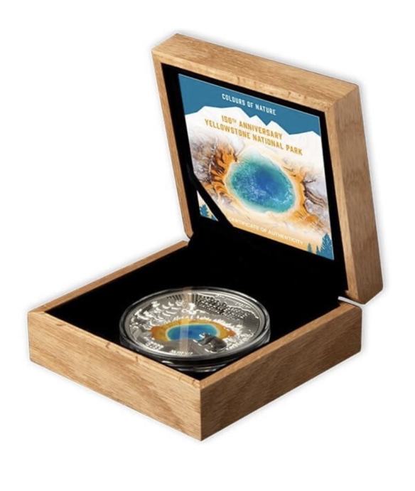 YELLOWSTONE 150th Anniversary Silver Coin 999 5$ Barbados 2022