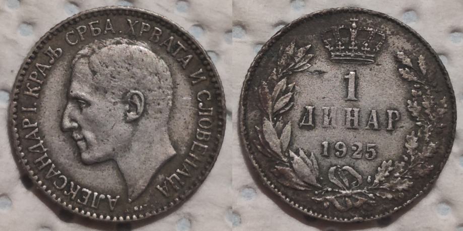 Yugoslavia 1 dinar, 1925 W/o mintmark **/