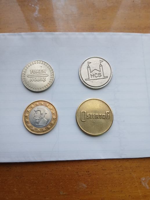 4 kom na slikama nemam pojma otkuda mi vjerojatno autopraonica osim Ostertag,to je pristupni žeton za kruna vrata otprije milijun godina za ulaz u jednu štedionicu.Cijena je za sva 4 neda mi se petljati s njima pojedinačno zamjene ne trebam.