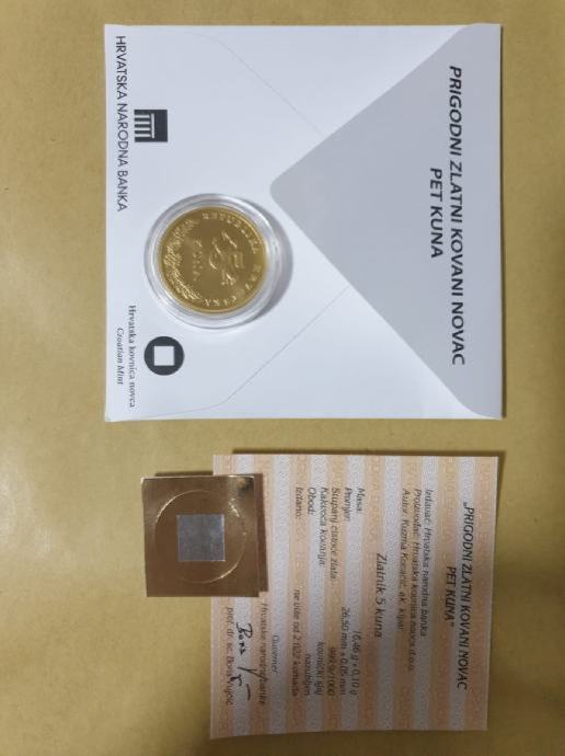 Prodajem zlatne kovanice, 2 kune i 5 kuna.