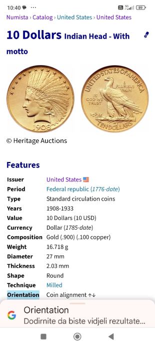 Prodajem zlatnik sa slike USA, Kovnica Philadelphia iskovano 405000 komada.
