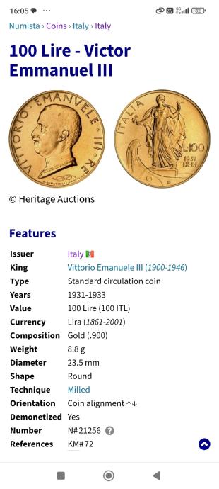 Prodajem Talijanski zlatnik sa slike. UNC, iskovano 22905 kom. Zlato 0,900, 8,8 g. Osobno preuzimanje