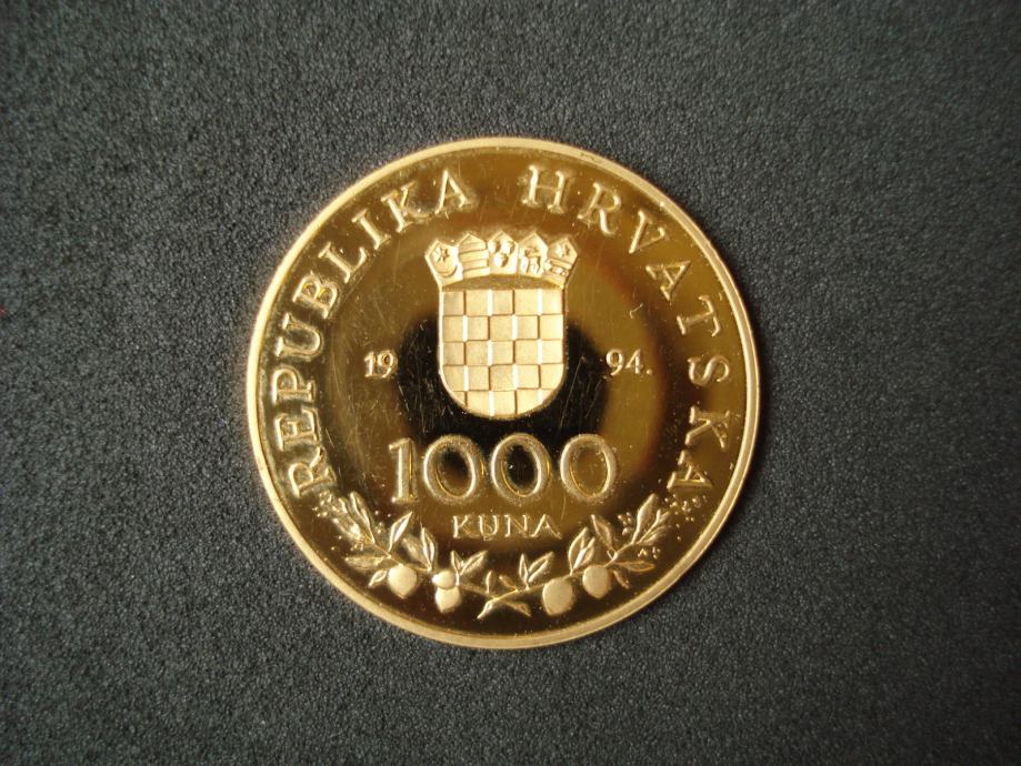 Zlatnik, 1000 Kuna, 1994, papa Ivan Pavao II
