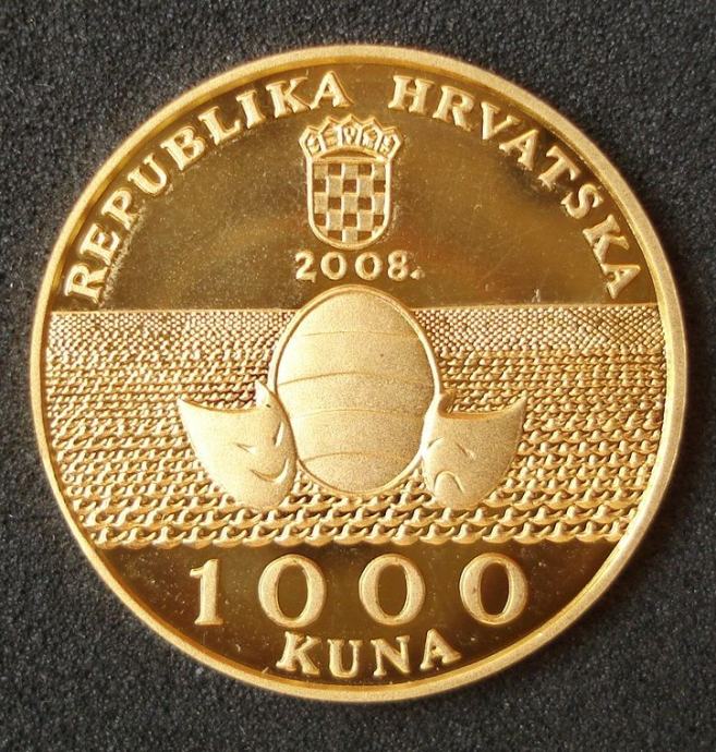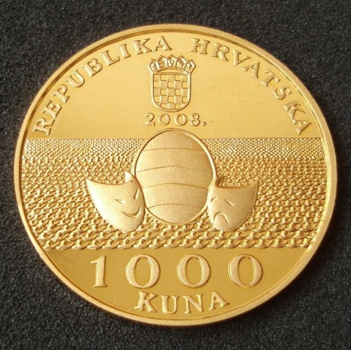 Zlatnik, 1000 Kuna, 2008, Marin Držić, Dubrovnik, UNC