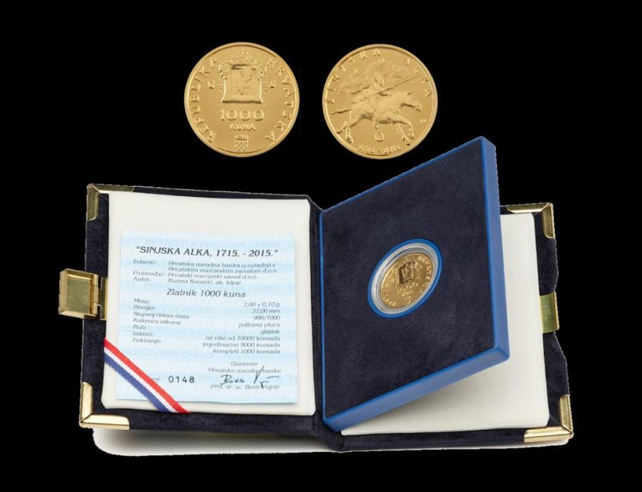 Zlatnik, 1000 Kuna, 2015, Sinjska alka, 7g zlata, slika preuzeta s interneta, serijski broj je zanimljiv: 0123
