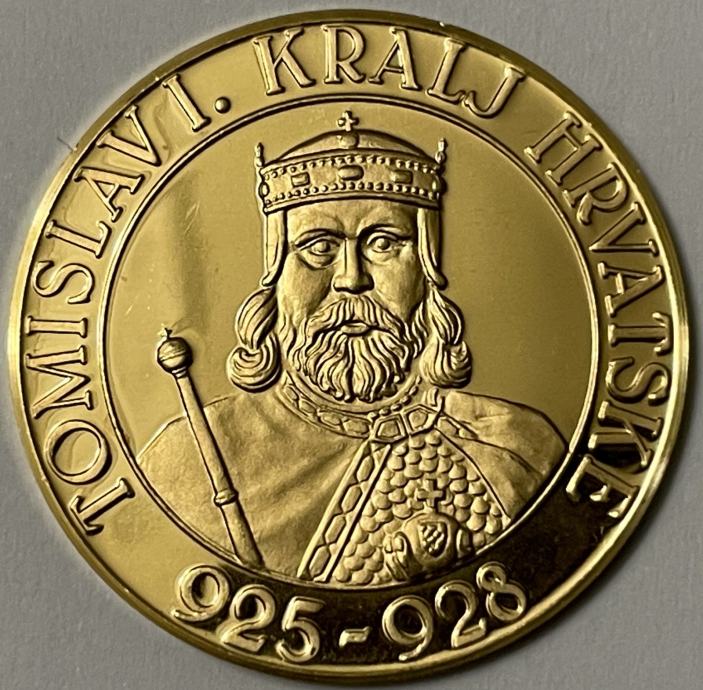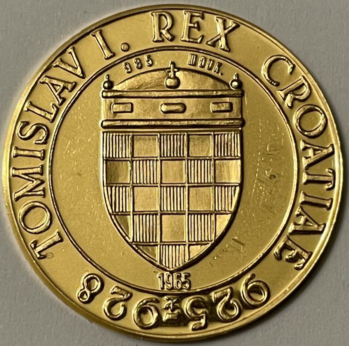 Dr. Zlatko Dragutin Tuđina trgovac numizmatike u Münchenu dao je u emigraciji 1965. godine iskovati prvi zlatnik s likom kralja Tomislava. Na aversu se nalazi prikaz kralja Tomislava en face, a na reversu je prikazan hrvatski grb. Zlatnik je kovao u Bavarskoj državnoj kovnici u Münchenu težine je 10,5 grama, zlato čistoće 986/1000