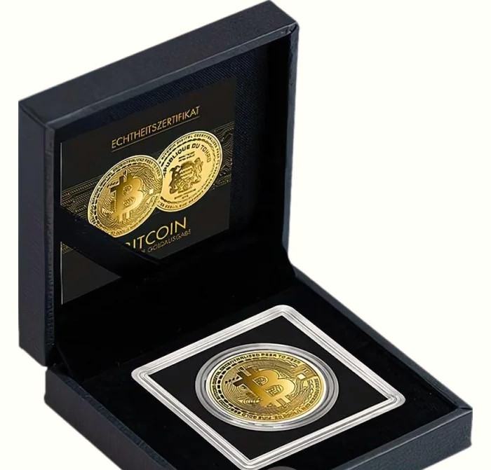Naličje ovog zlatnika prikazuje kultni simbol Bitcoina, istaknuto postavljen u središtu, okružen digitalnim elementima. Lice ovog zlatnika prikazuje grb Čada, okružen natpisima: "REPUBLIQUE DU TCHAD" - zemlja izdavanja, "999/1000 FINE GOLD" - čistoća zlata, "3000 FRANCS CFA" - nominalna vrijednost, "1/1000 OZ." - težina zlatnika i "BITCOIN DIGITAL DECENTRALIZED PEER TO PEER" - glavna značajka Bitcoina.