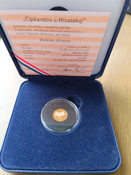 Novi zlatnik Čipkarstvo u Hrvatskoj 1/16 unce. Masa 1,944 grama. Poštarinu plaća kupac. Mob. 0992674205. Moguće osobno preuzimanje u Petrinji i u Zagrebu (Oranice).