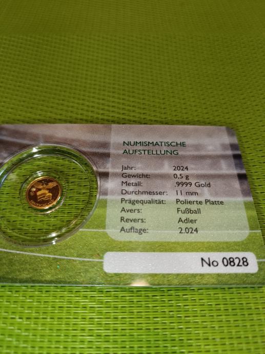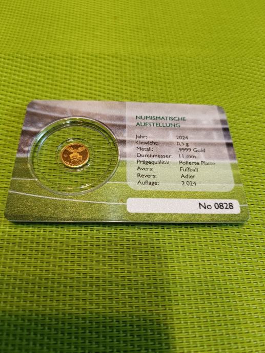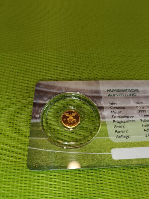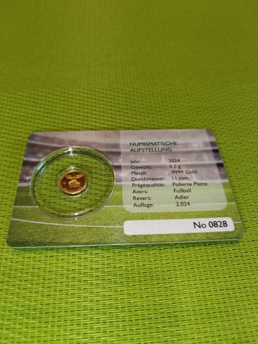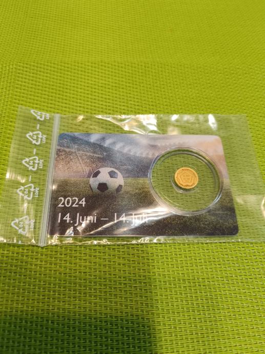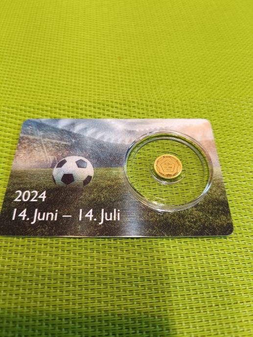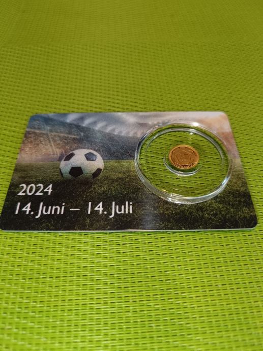 Zlatnik Europsko nogometno prvenstvo 2024.g. u Njemačkoj u Coin card kartici. Zlatnik je izdan u 2024 primjerka u cijelom Svijetu. Poštarinu plaća kupac. Mob. 099 267 4205.
