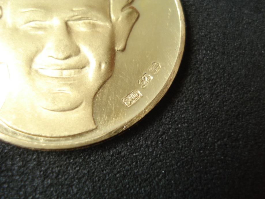 10.1 gram, zlato finoće 840, kovano u Zlatarni Celje.