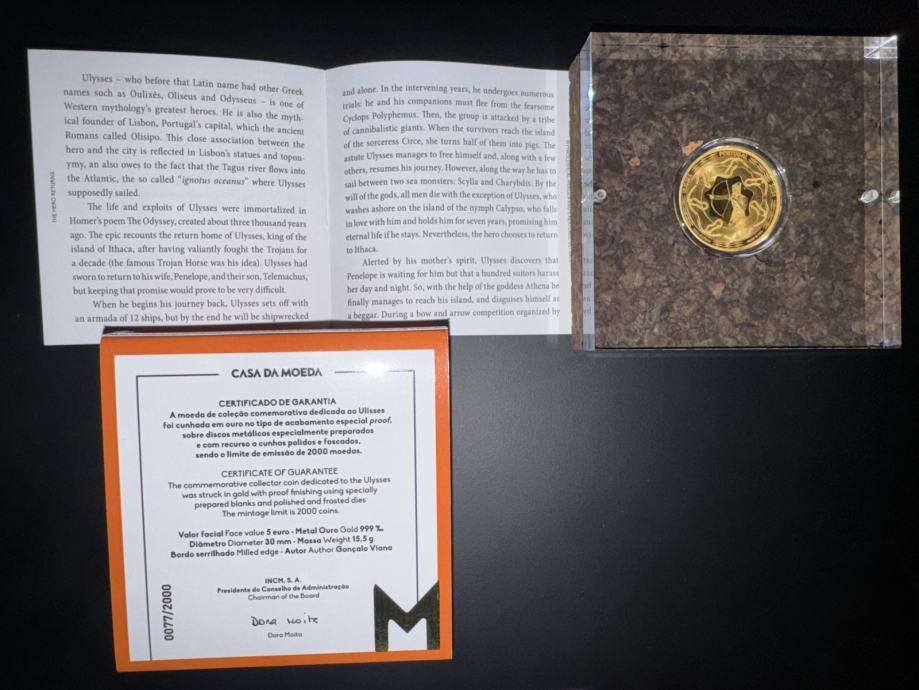 Ulysses, jedan od najvećih junaka zapadne mitologije, povezuje se s osnivanjem grada Lisabona (Olisipo). Ovjekovječen u poemi Homerova Odiseja, Ulysses se na putu kući suočio s brojnim kušnjama, uključujući susrete s kiklopom Polifemom, kanibalskim divovima, čarobnicom Kirkom, Scilom i Haribdom. Pripovijest ističe njegovu lukavost i upornost. Kovanica posvećena mitologiji ističe Ulysses kao inspirativnu figuru, s njegovim legendarnim sposobnostima, a kovao ju je INCM.