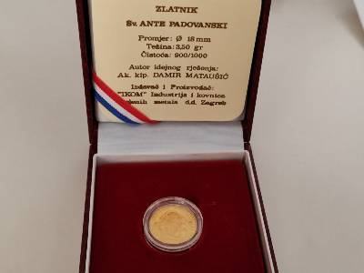 Zlatnik je čuvan u kutijici, kutijica uključena.