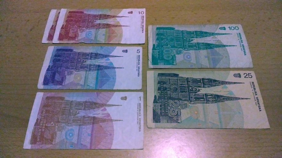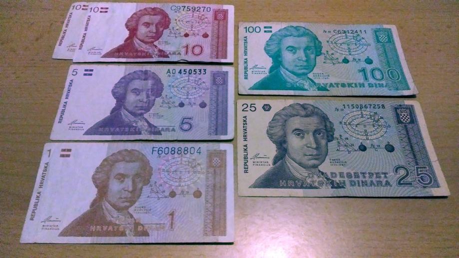 1, 5, 10, 25 i 100 hrvatskih dinara