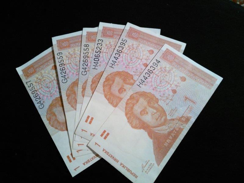 1 Hrvatski Dinar-1991.god lot od 6 komada,stanje vidljivo na slici