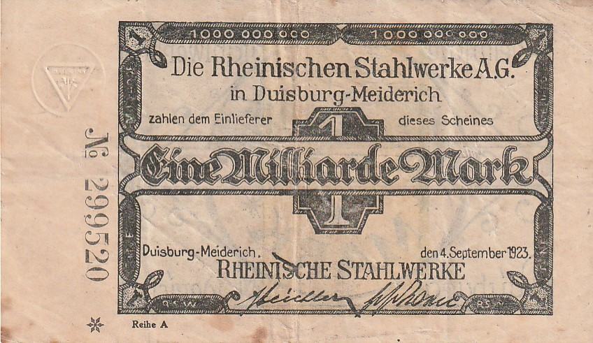 1 MILLIARDE MARK DUISBUNG-MEIDERICH 1923