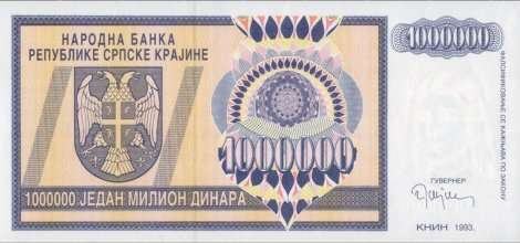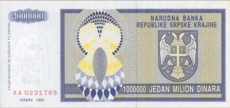 1.000.000 dinara Knin/RSK 1993. I/II serija aUNC