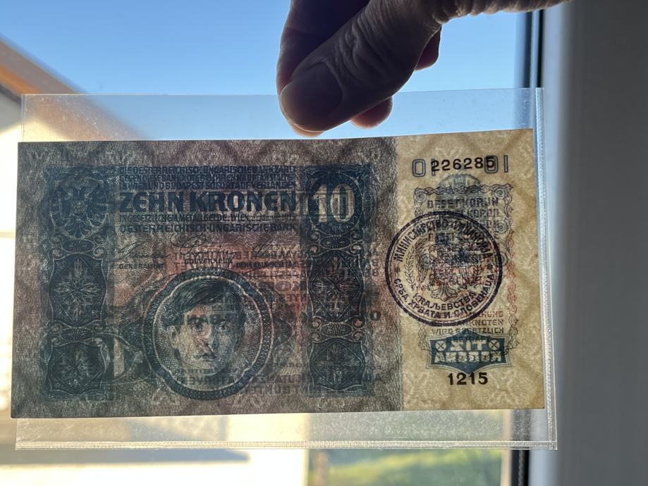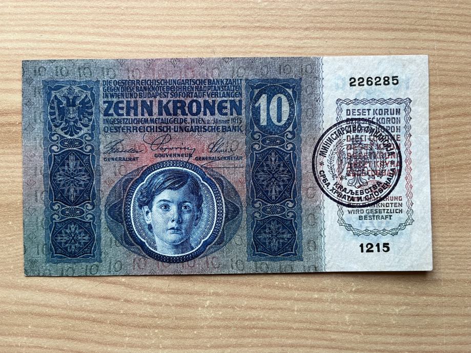10 KRUNA 1915 XF/AUNC žig Minisarstva finansija
