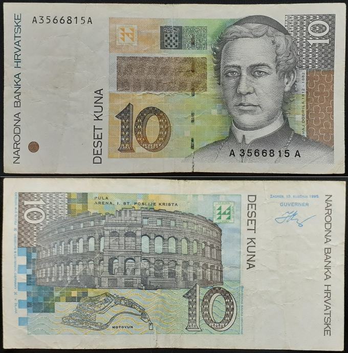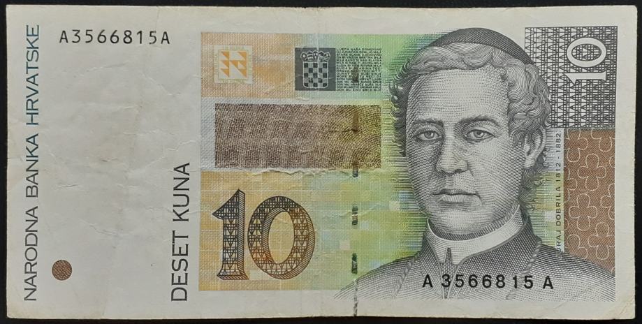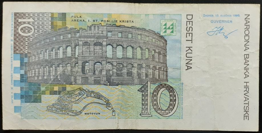 novčanica ima poderotinu od cca 8 mm na donjem bridu, na mjestu sigurnosne niti