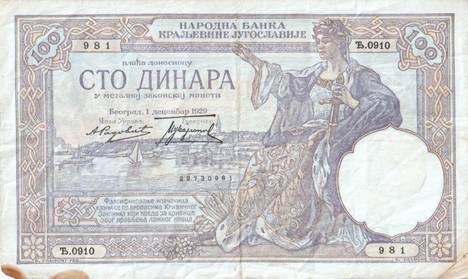 100 din KRALJEVINA JUGOSLAVIJA 1929