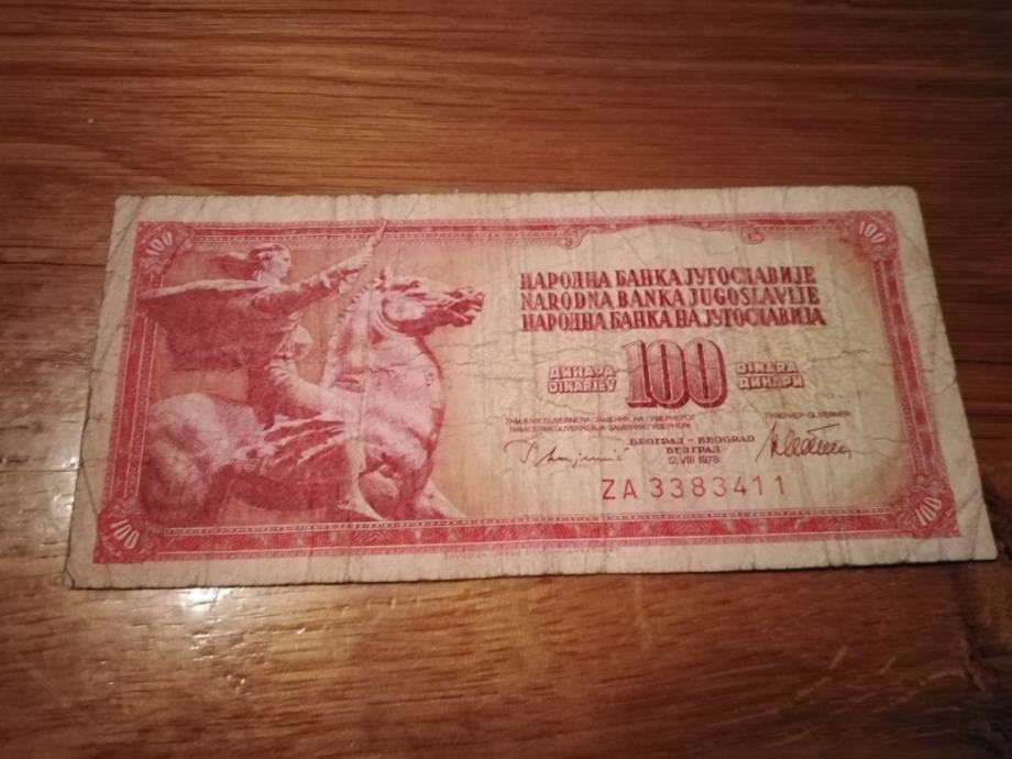 100 dinara 1978 zamjenska novčanica ZA no-2120