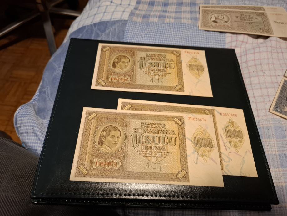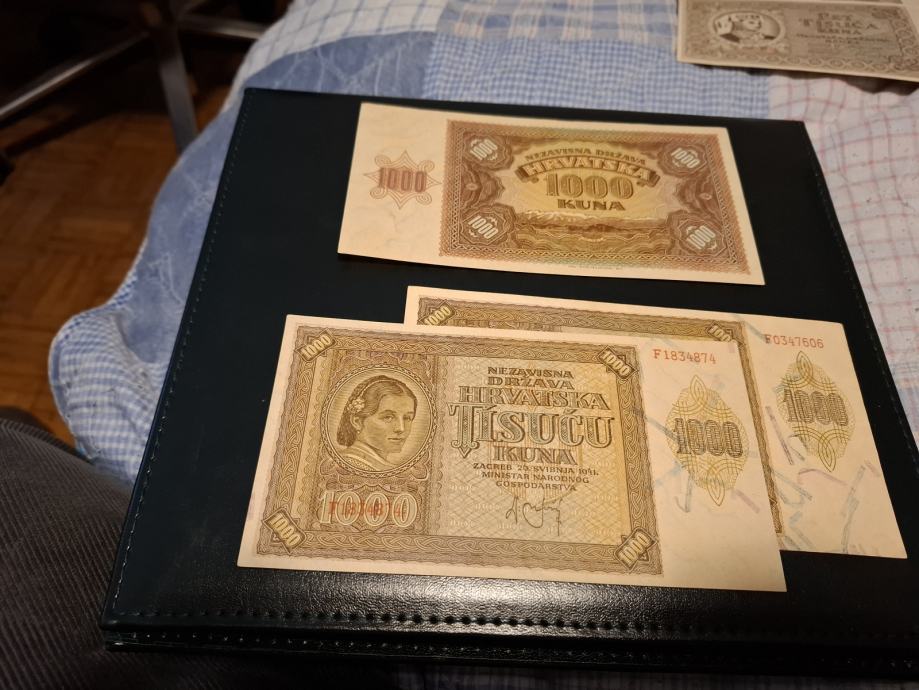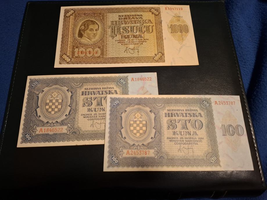 Prodajem 2 novčanice od 100 kuna u UNC kvalitetu, cijena jedne je 25€ za obadvije čete platiti 40€ i 1000 kuna UNC za 40€ te 2 novčanice po 1000 kuna XF po 25€ komad. Plačanje na tekuči račun (IBAN) ili PayPal slanje novca prijatelju. Šaljem iz Slovenije, poštarina je 10€.