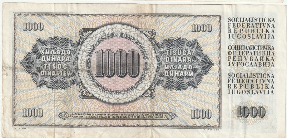 1000 DINARA 1974. SFR JUGOSLAVIJA