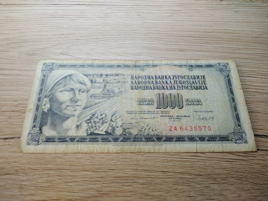 1000 dinara 1981 zamjenska novčanica ZA No- 2116