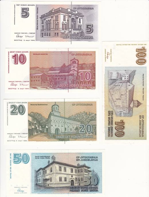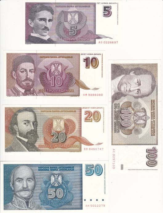 SR Jugoslavija, novi dinar UNC 1994.;1996.- lot KR148-152